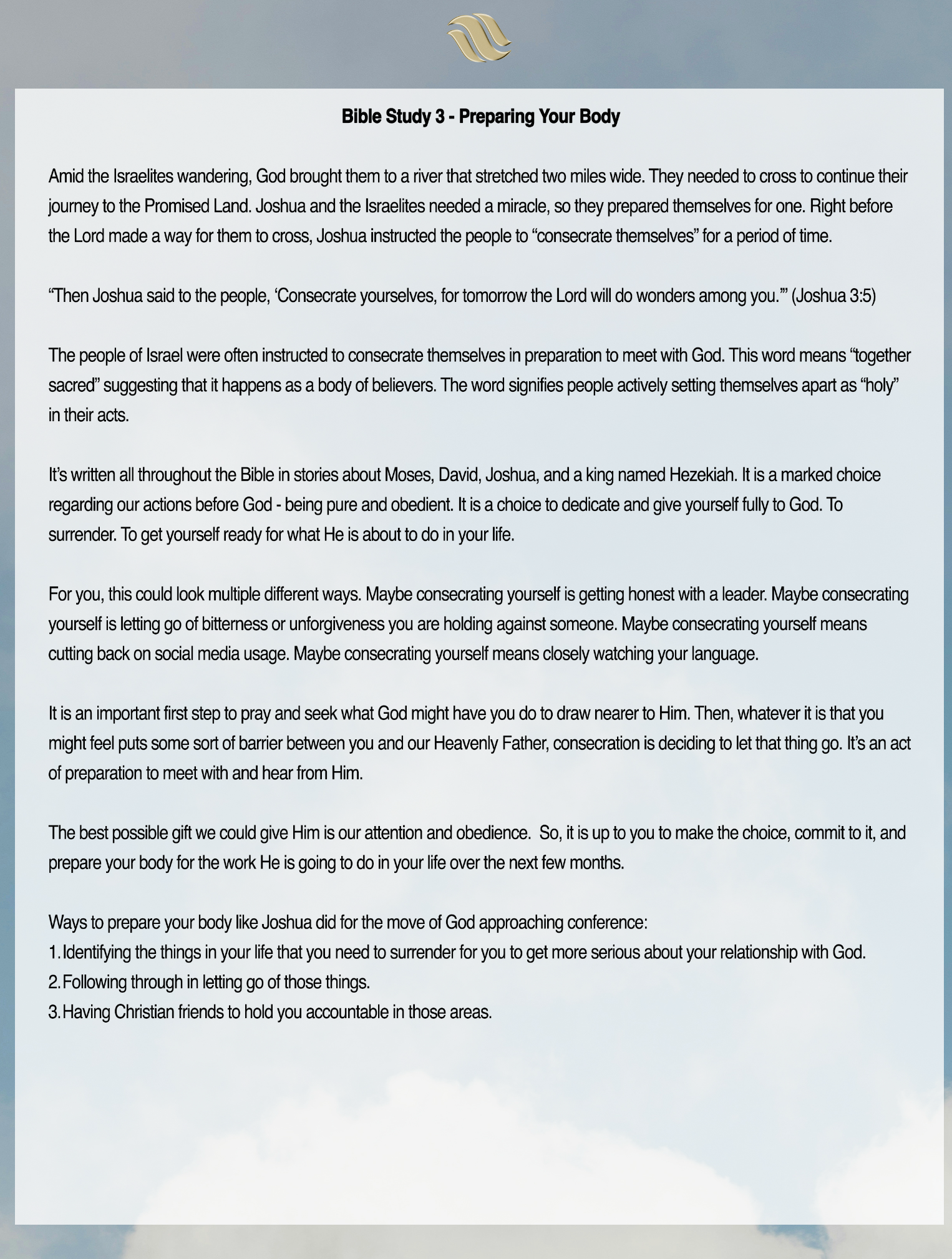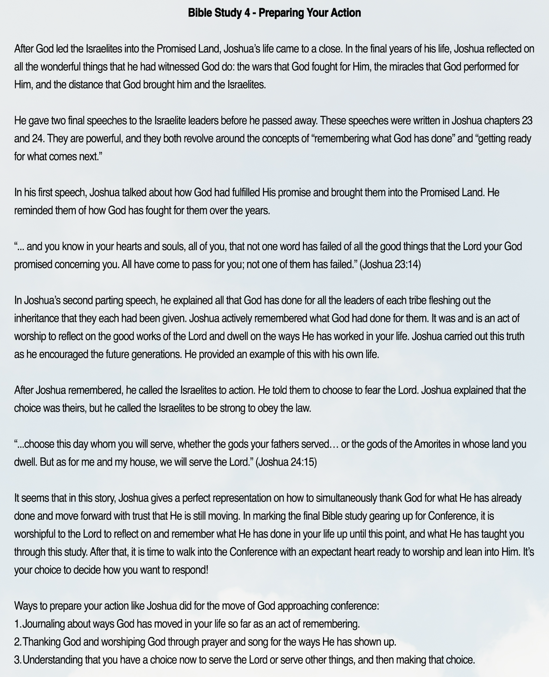 If for any reason someone cannot download the app, we will text or share you a copy of the devos, schedule, and church time questions that you can make available
