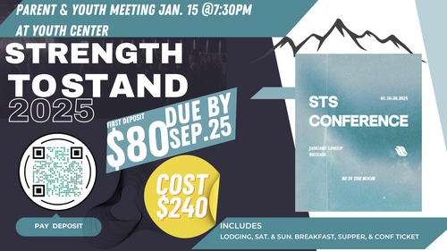 If you are unable to attend the meeting, please get in touch with the church office before Jan. 15 between hours 9am - 4pm to arrange a time to submit final paperwork and payments